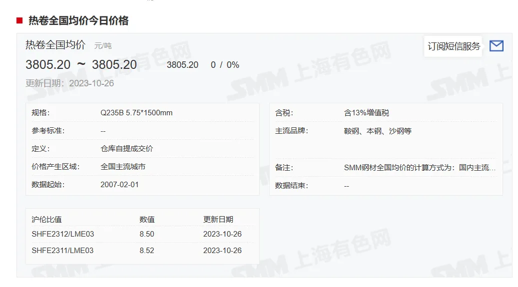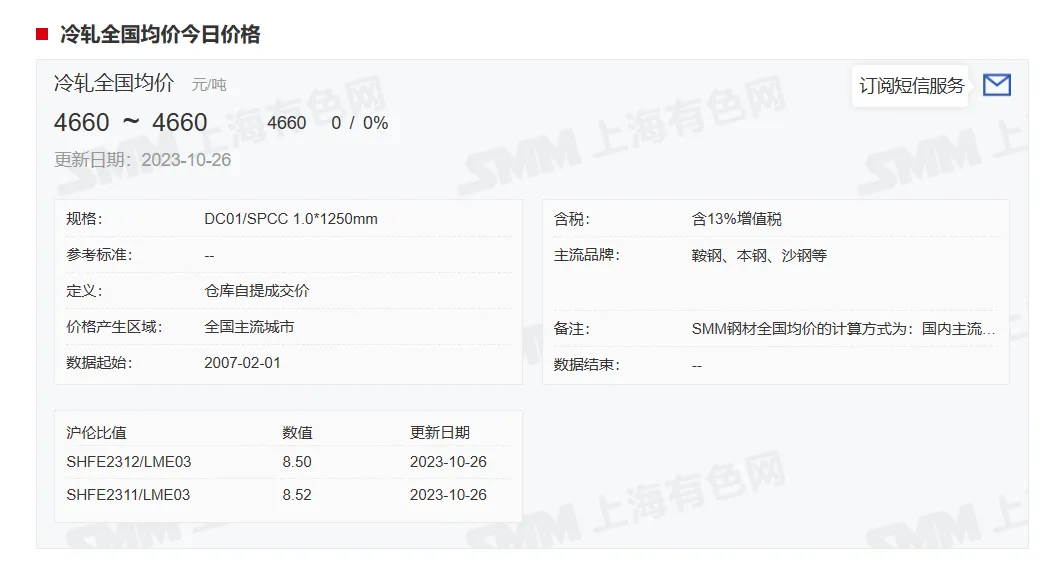 2023年10月26日,上午10:10, 唐山355系列带钢市场价格 3740元/吨,较昨稳;本月结算周期,截止到今天均价:3740元/吨,截止到月底:3740元/吨。