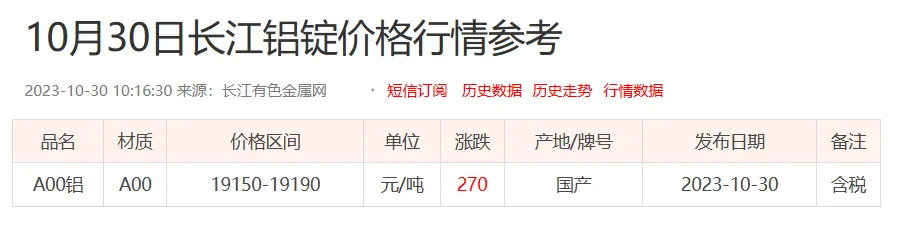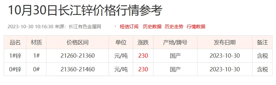 数据来源:我的钢铁、上海有色网、长江锌业网、长江铝业网
