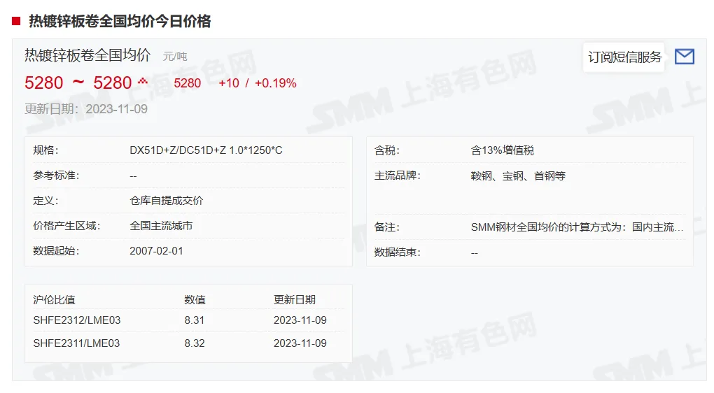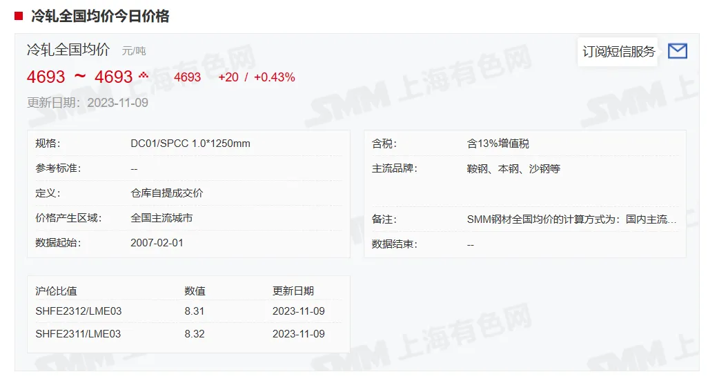 2023年11月9日,上午10:10, 唐山355系列带钢市场价格 3850元/吨,较昨涨20元/吨;本月结算周期,截止到今天均价:3790元/吨,截止到月底:3821元/吨。