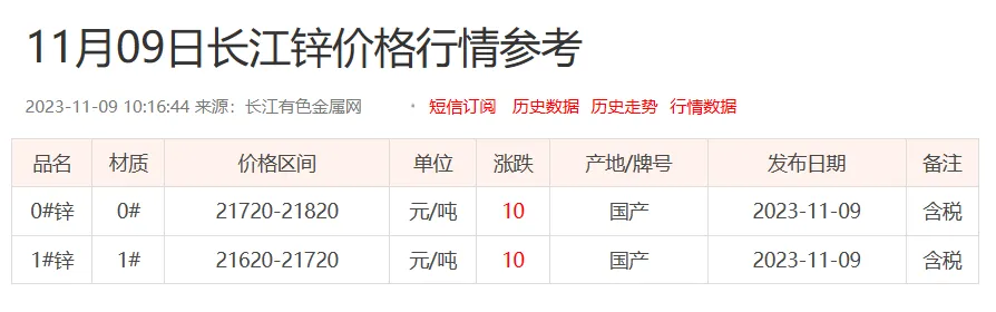 数据来源:我的钢铁、上海有色网、长江锌业网、长江铝业网