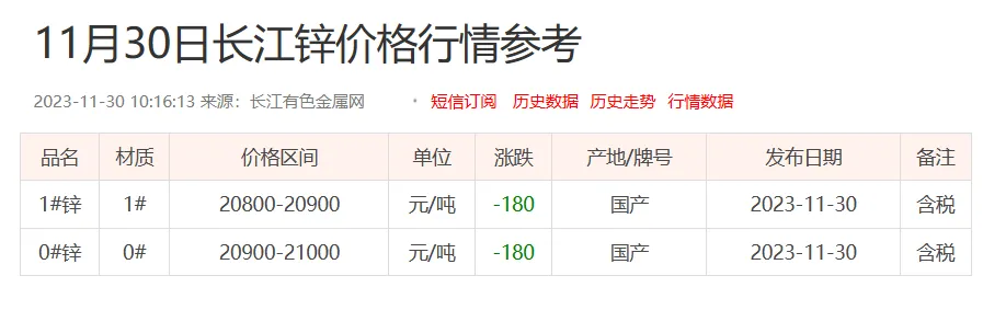 数据来源:我的钢铁、上海有色网、长江锌业网、长江铝业网