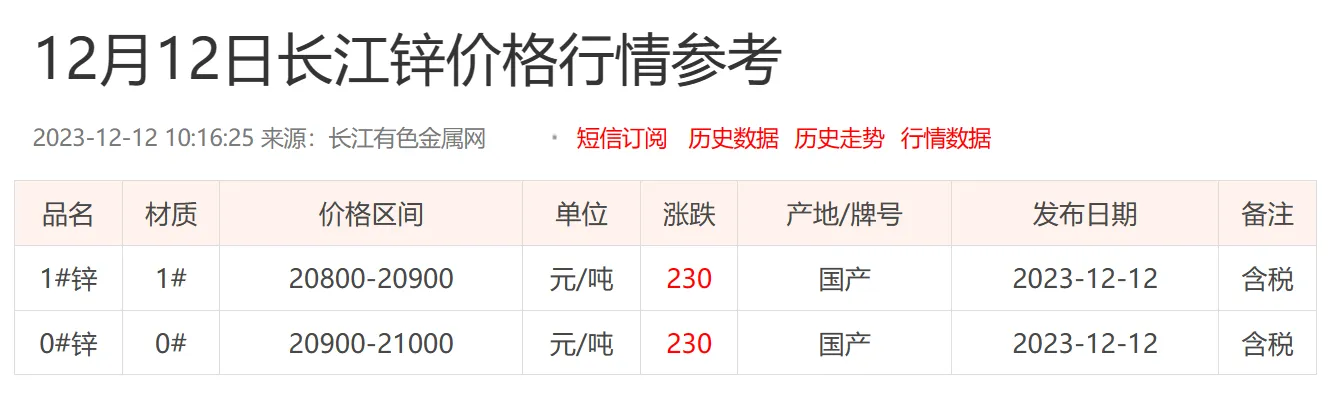 数据来源:我的钢铁、上海有色网、长江锌业网、长江铝业网