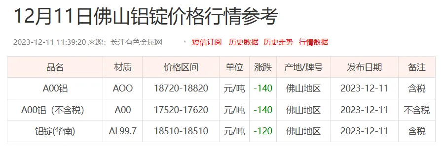 数据来源:我的钢铁、上海有色网、长江锌业网、长江铝业网