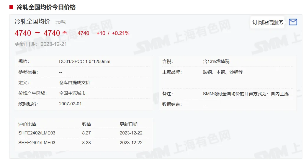 2023年12月21日,上午10:10, 唐山355系列带钢市场价格 3920元/吨,较昨稳;本月结算周期,截止到今天均价:3921元/吨,截止到月底:3921元/吨。