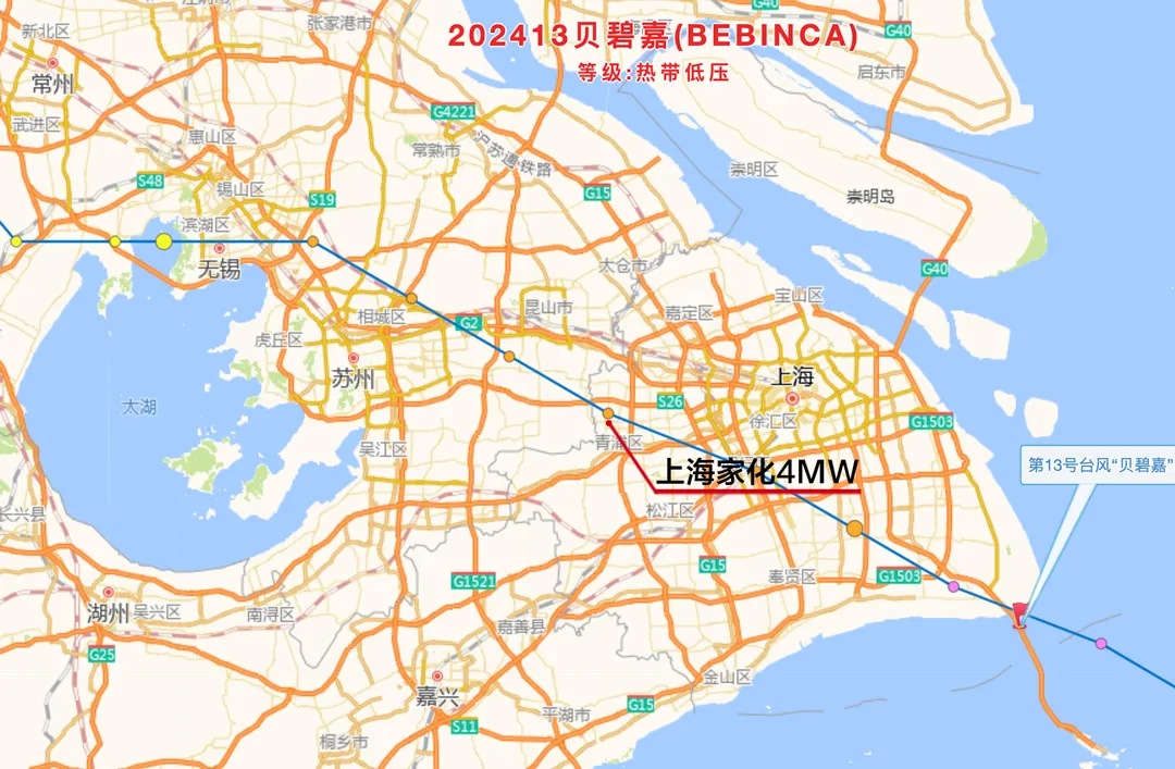 位于上海市青浦区的Jahwa上海家化4MW柔性屋面分布式光伏电站,正好在此次“贝碧嘉”台风路径上,且位于风暴眼中心附近,过境风力达到13级。