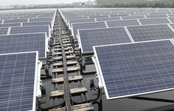 受水位高低变化影响,一般光伏组件最低点要高于水面最高水位1.0m以上,电站运行期间采用船只进行运维。