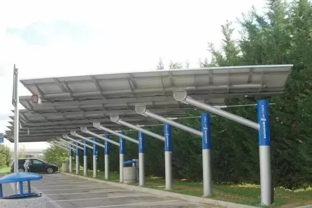 光伏车棚,指以光伏组件作为结构的车棚,下面是常见的光伏车棚案例 南京一光伏车棚被吉尼斯官方认证为全球最大的光伏建筑一体化电站 这个是带跟踪系统的吗? 好有情调的车棚,羡慕… 第三波 创新的利用原有墙体结构…
