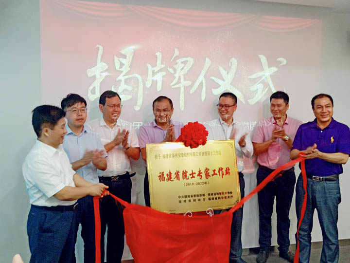7月29日,福建省院士专家工作站在安泰集团厦门总部正式揭牌成立,象征着高新技术企业漳州安泰铝材有限公司与中南大学钟掘院士研究院正式达成合作。漳州安泰总经理黄仕塔、福建安泰海外运营中心总经理王海鹏、中南大学黄元春教授以及组织部部长王志文、科技局局长叶文生、发改局局长姚美福、组织部人才办主任徐志清等政府领导共同出席了本次揭牌仪式。