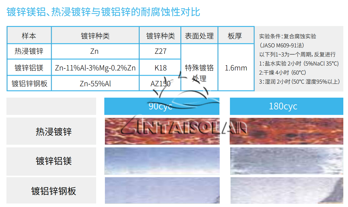随着太阳能电站的普及和运用,针对更多恶劣腐蚀环境以及日益严格的环保要求,作为保护整个光伏电站的“骨骼系统”,光伏支架如何应对如此复杂多变的自然环境?安泰深耕支架解决方案13年,重视从材料和结构端共同优化,推出了全新镀锌铝镁光伏支架,大大提高了材料的耐腐蚀性能,适合替代传统热镀锌材料,应用于大型地面电站项目。
