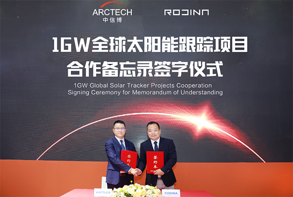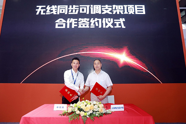 此次新品发布会上,中信博副总经理、国内营销负责人周石俊还与上海电力设计院有限公司副总经理林勇锋分别代表双方公司,签订了河北省张北县光伏发电前沿技术先行示范基地100MW无线可调项目的合作协议,项目将全额采用中信博此次发布的无线同步可调支架。