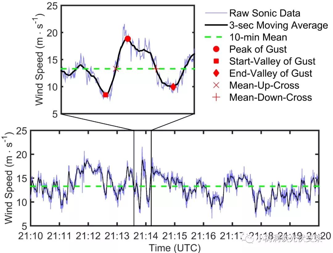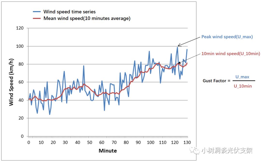 风有两种比较重要的参数,一个是“重现期”,公众号之前《千年一遇?台风是要成精了》系列已经有所介绍。另外一个就是“时距”,目前世界上风荷载规范主要有三种风速时距,3s阵风风速,10分钟平均风速,1小时平均风速。这三种风速大小可以互相进行转换。