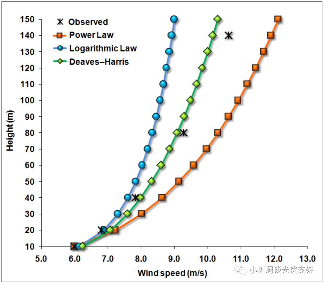 当我们希望计算不同高度的风速时,则需要乘上一个系数,称为风压高度变化系数(height factor),于是不同高度的风速“V”和其高度“z“组成了一个函数,表现在坐标系上则是一个风速随高度变化的曲线。目前世界上主要使用三种函数来拟合这条曲线: