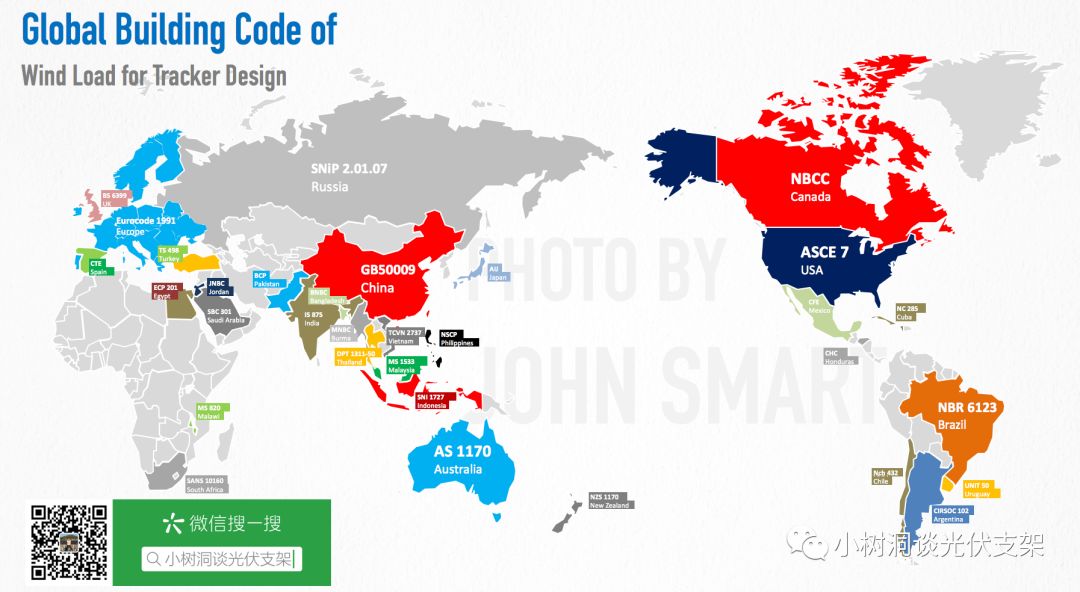 但凡是做国际跟踪器项目,都必须使用当地荷载和钢构规范进行钢结构的分析和计算,小树洞曾研究超过30个国家的原版风荷载、雪荷载、地震荷载、甚至洪水和冰冻荷载规范。这些规范看似千变万化,但是每一个公式都具有很相似的意义和取值方式。