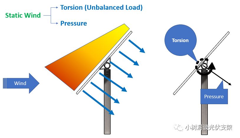跟踪器为单自由度(one DOF)系统,由于风荷载在跟踪器表面上下部分的作用力大小不同,会产生一个力矩差,作用在转动轴上便形成了一个扭矩(Torsional Moment)。