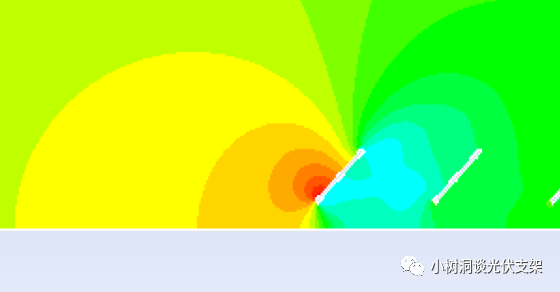 跟踪器为多排系统,气体流过前排时,其速度会有衰减,并会产生涡流影响后面排的受力,我们称之为风遮挡效应(Wind Sheltering Effect)。但是荷载规范里只使用单一的压力系数,并没有各个排对应的系数值,如果使用同一个压力或者扭矩系数设计所有排的跟踪器,则不符合实际情况。
