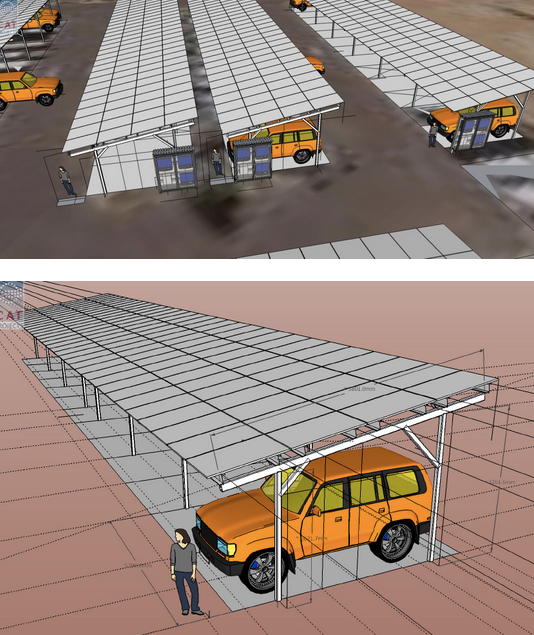 The panels that have been chosen for the installation are BenQ Solar mono-crystaline modules, which were selected for their superior performance in high heat as well as their black appearance, which reduces glare. The shade structures have been designed to accommodate most of the vehicles used to seeing in Central Australia — four-wheel drives complete with roof racks will have no problems fitting underneath.