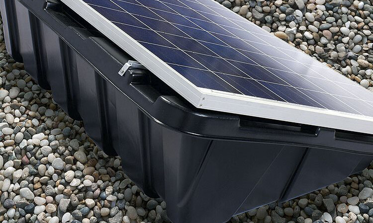 将 Renusol CS+ 桶放置到位,装入镇流器并拧上太阳能组件。近 20 年来,被证明是简单的,被证明是快速的,被证明是安全的。由 HDPE 制成的塑料槽广泛地将重量分布在底部结构上。