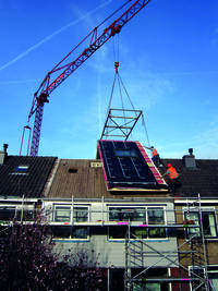“We were impressed with the Renusol mounting system as it is extremely easy to install and has proven its worth for over ten years on the market. We manufactured the roof with its integrated solar installation in our factory and then delivered the fully prefabricated solar roof to the site where it was installed in one piece,” explains Linda van Leeuwen, production manager at BAM Woningbouw, a subsidiary of the Royal BAM Group, which operates throughout Europe. In addition to planning and constructing new homes, the multi-award winning, innovative company specialises in renovating old buildings. “Roof-integrated solar installations particularly lend themselves to renovation projects. Instead of cloaking the roof in tiles, a solar array is built into the roof. It is visually appealing, saves the homeowner money on roofing materials and generates clean power,” adds van Leeuwen.